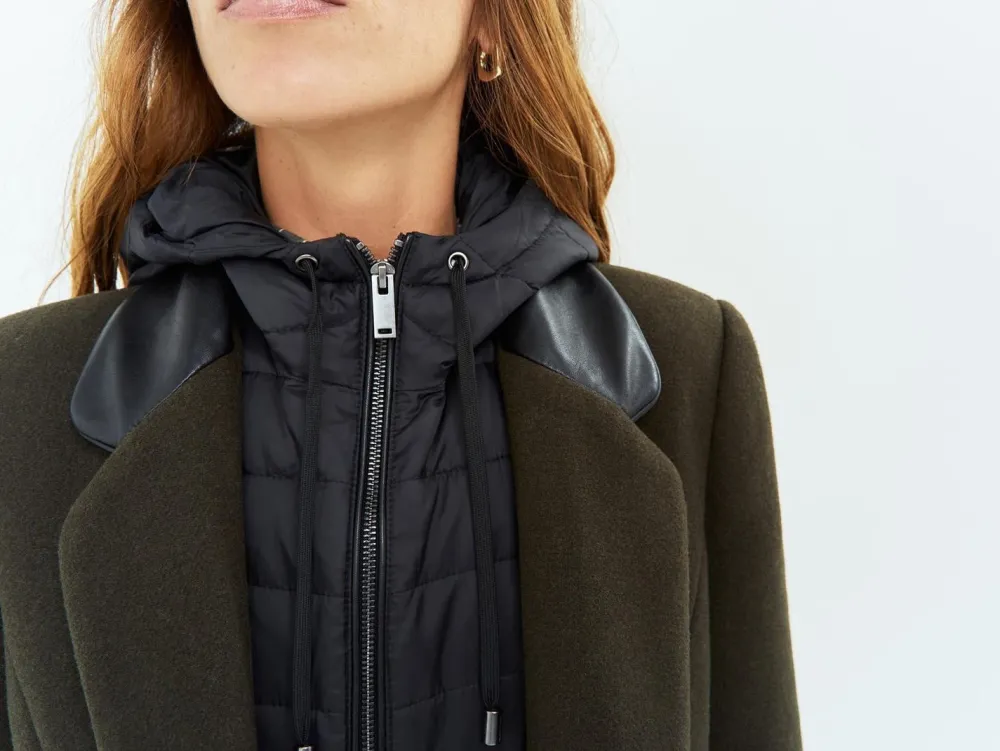 Jouez-La Dandy ! Le Manteau Dida Mixe Les Codes Et Les Genres En Associant Un Lainage Kaki Avec Une Parmenture Amovible Esprit Doudoune. On Le Superpose Sur Les Robes À Fleurs Et Les Jupes Plissées.