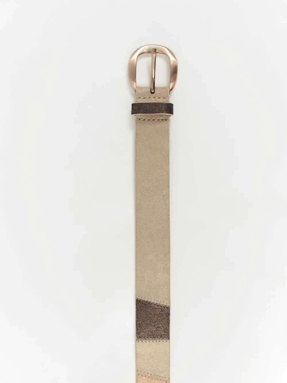 Doré, Beige Et Marron : C’Est Le Trio De Couleurs Intemporelles De La Ceinture Alana. En Cuir Velours, Elle Gagne En Chic Par Sa Finition Foil Pour Un Effet Pailleté Et Par Son Jeu De Patchwork.