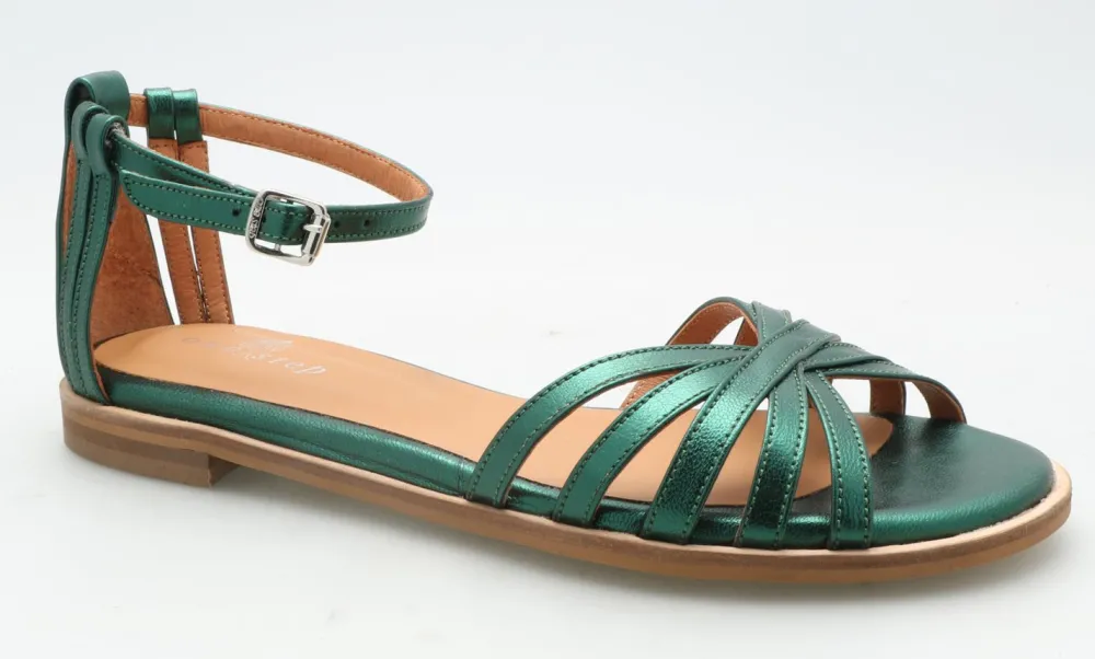 Chaussures^One Step O.Faro – Sandales Plates Vert Cedre En Cuir Metallise