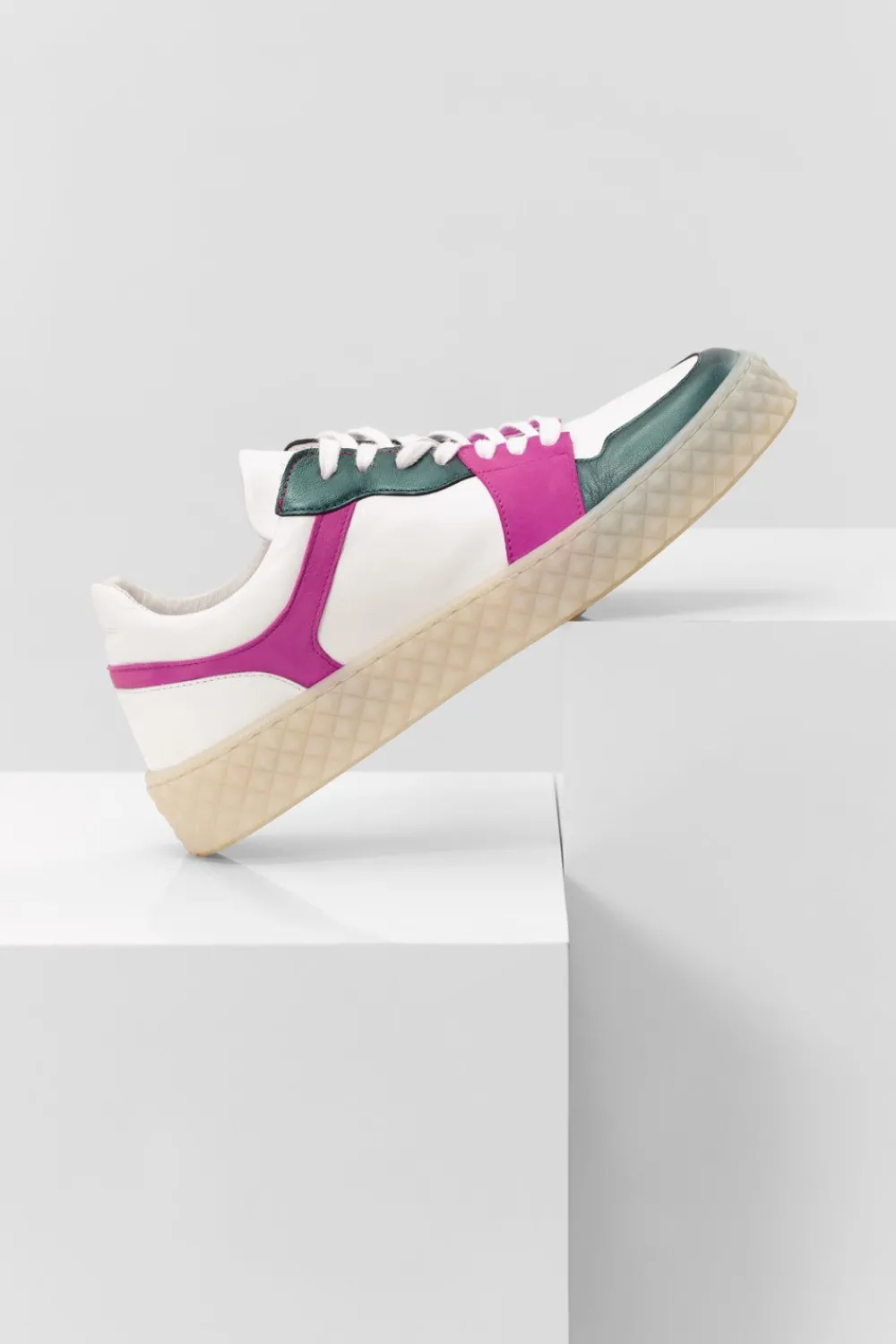 Pourquoi On Craque Pour Les Sneakers O.Limbo ? D’Abord Pour Leur Ligne Minimaliste, Pile Dans L’Air Du Temps. Ensuite, Pour Leurs Couleurs, Associant Le Blanc, Le Vert Et Le Violine, À La Perfection. Enfin, Pour Leurs Matières De Qualité Et Leurs Finitions, Comme Les Semelles Facettées.