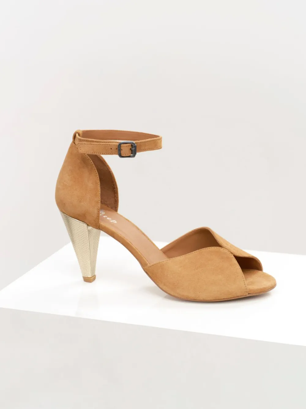 Chaussures^One Step O.Nola – Sandales A Talon Caramel En Cuir Velours