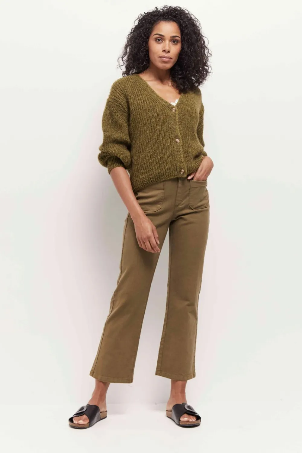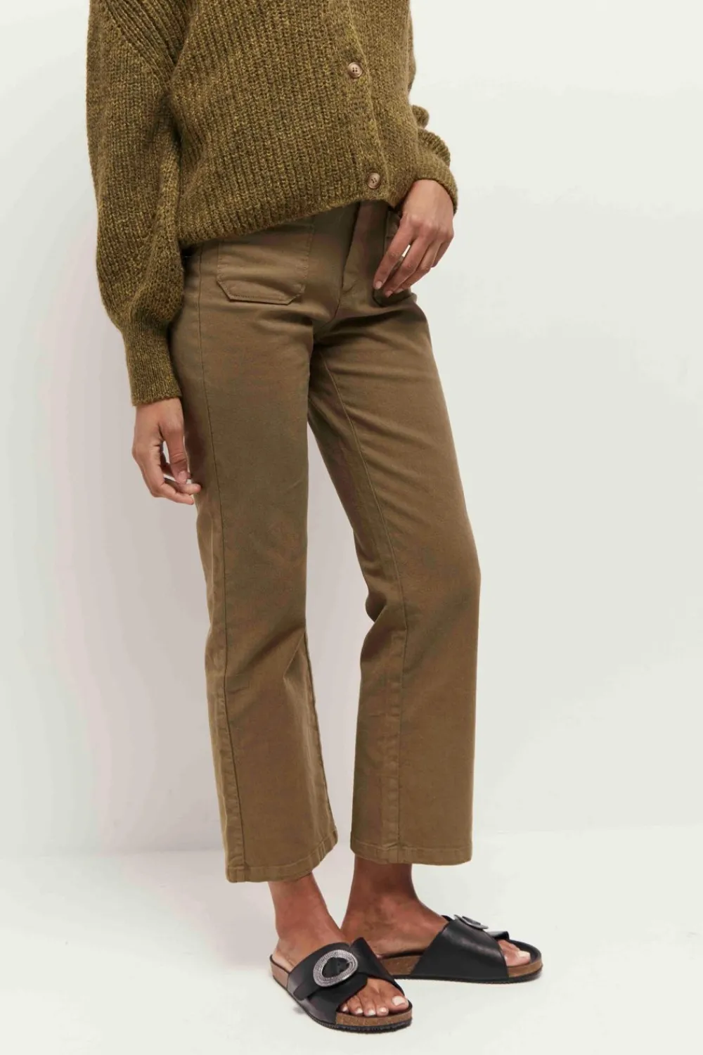 Nouvelle Forme Bootcut Pour Le Wilona. Un Jean En Sergé De Coton Surteint Coloris Kaki, Avec Poches Plaquées Devant Et Dos.