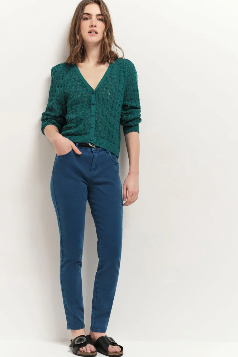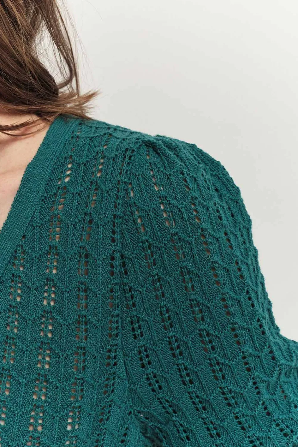 Le Cardigan Tarry N’Est Pas Un Cardigan Comme Les Autres. En Tricot Fin, Il Se Démarque Par Des Points Fantaisie Ajourés, Se Ferme Par Des Boutons Recouverts, Et, Nouveauté, Il Se Porte Encolure V Devant Ou Dos. Son Coloris Vert Cèdre Est Une Couleur Phare De La Saison.