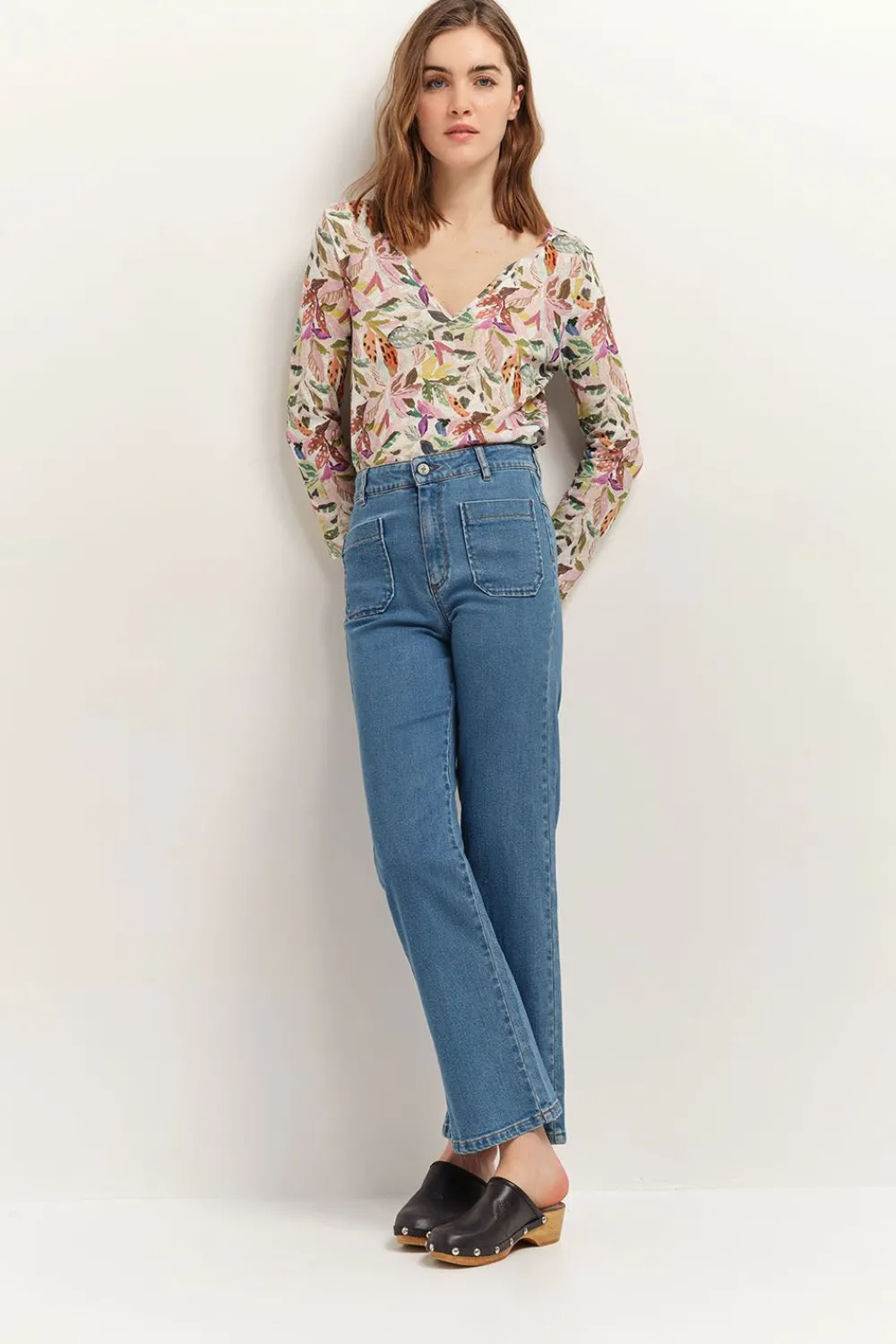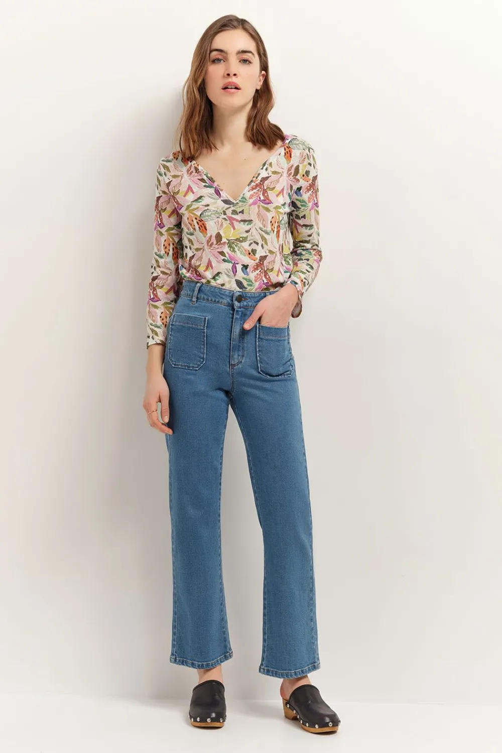 Coup De Cœur Pour L’Imprimé Jungle Bigarré Exclusif De La Saison. Il Investit, Ici, La Maille De Coton Et Lin Du T-Shirt Magnetic, À Encolure En V Et Manches Longues.