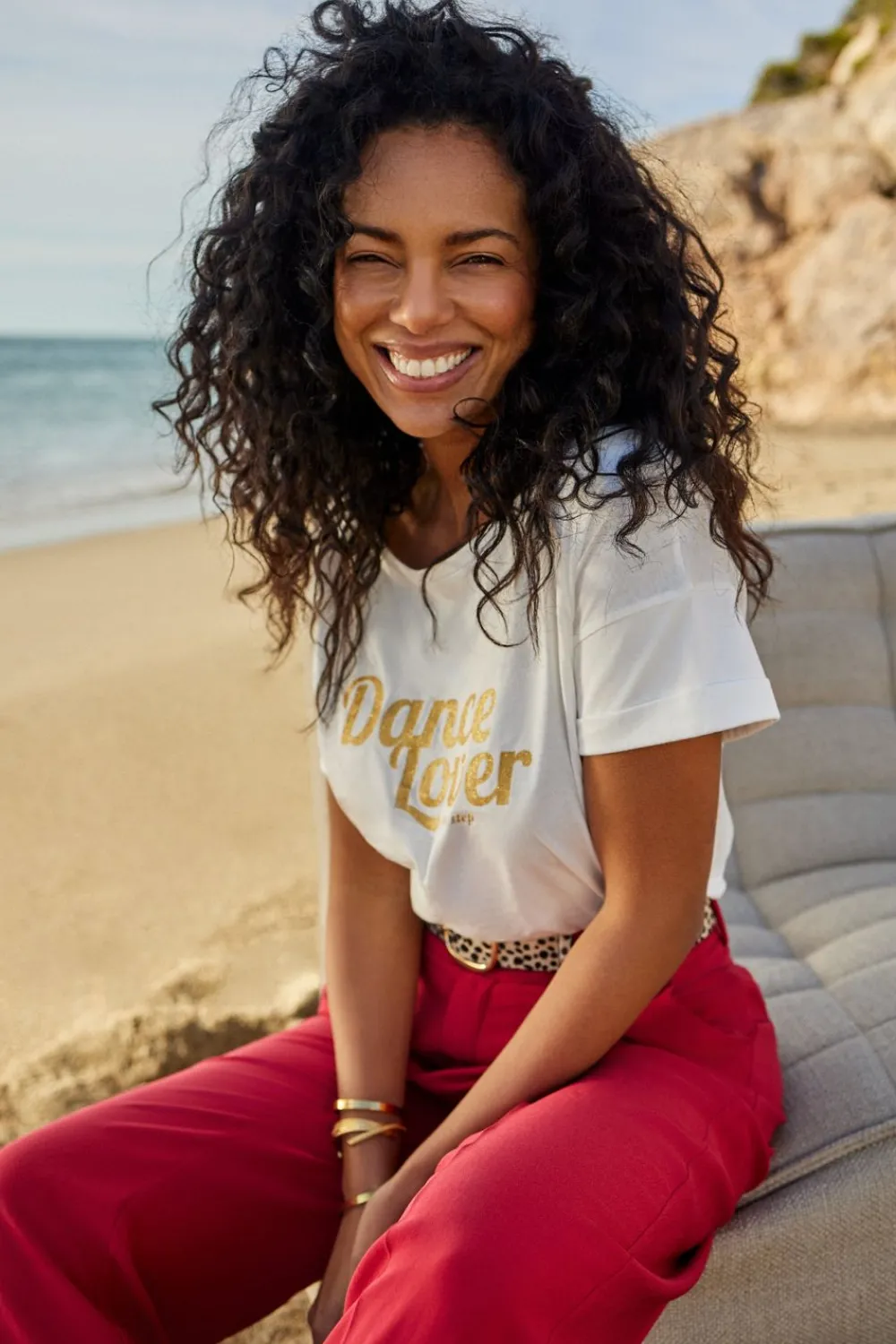 Vous Dansez En Dormant ? Vous Dansez En Mangeant ? Vous Dansez En Travaillant ? Vous Dansez Partout, Tout Le Temps ? Offrez-Vous Le T-Shirt Marlon. En Coton Bio Écru, Il S’Anime, Sur La Poitrine, Du Nouveau Mantra Dance Lover, En Paillettes Dorées.