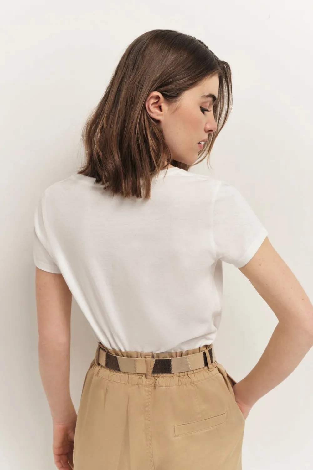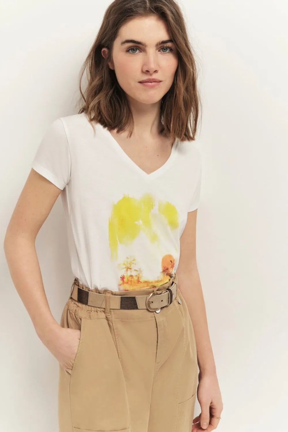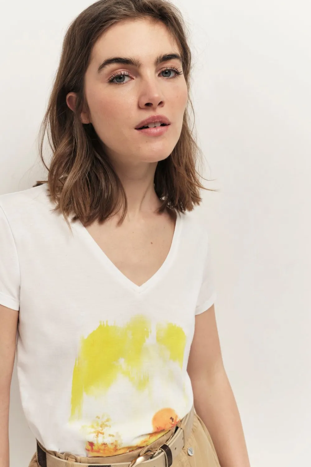 Inspirée Par Le Plein Été, Le T-Shirt Mira En Coton Bio Blanc Propose Une Sérigraphie Placée Exclusive.