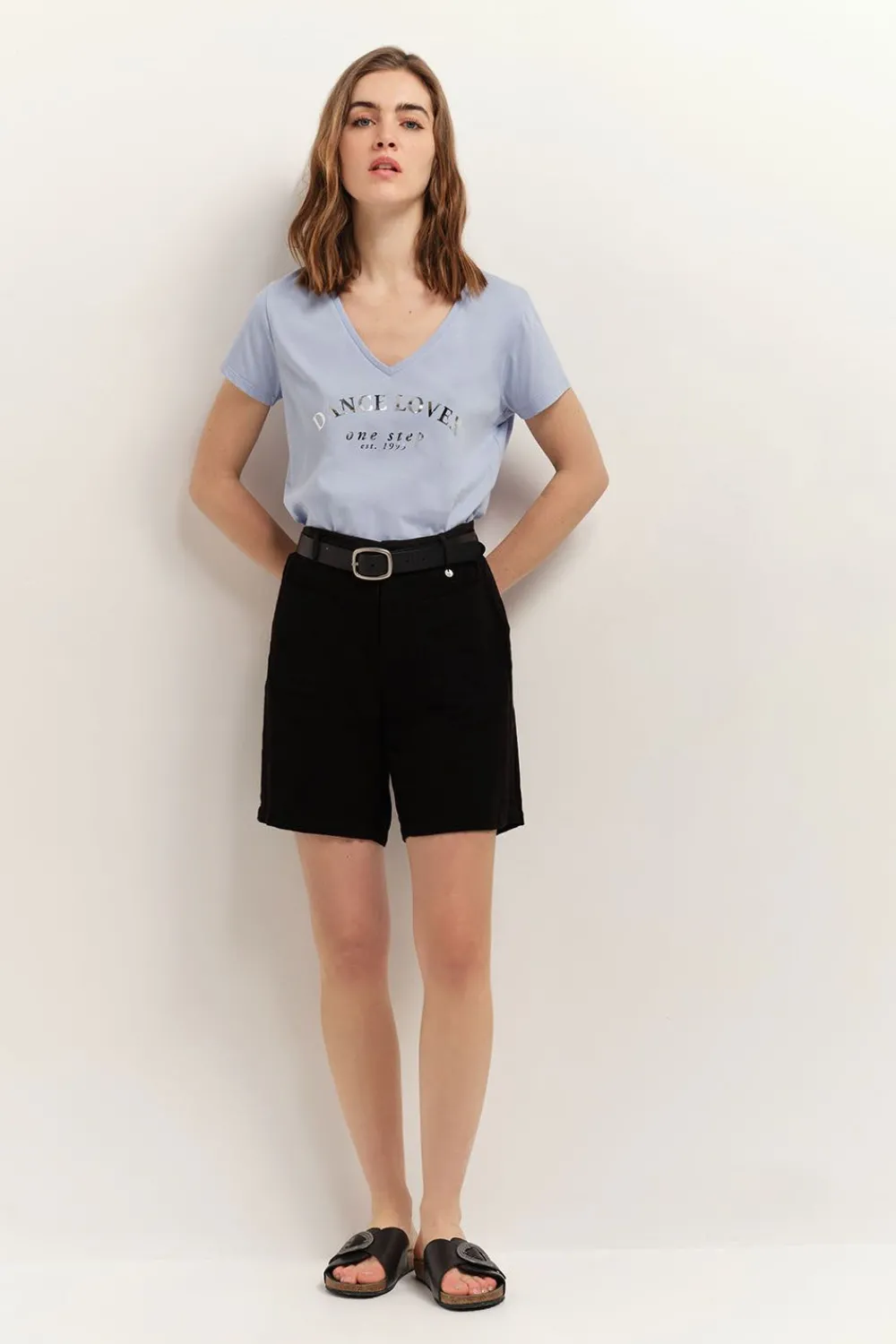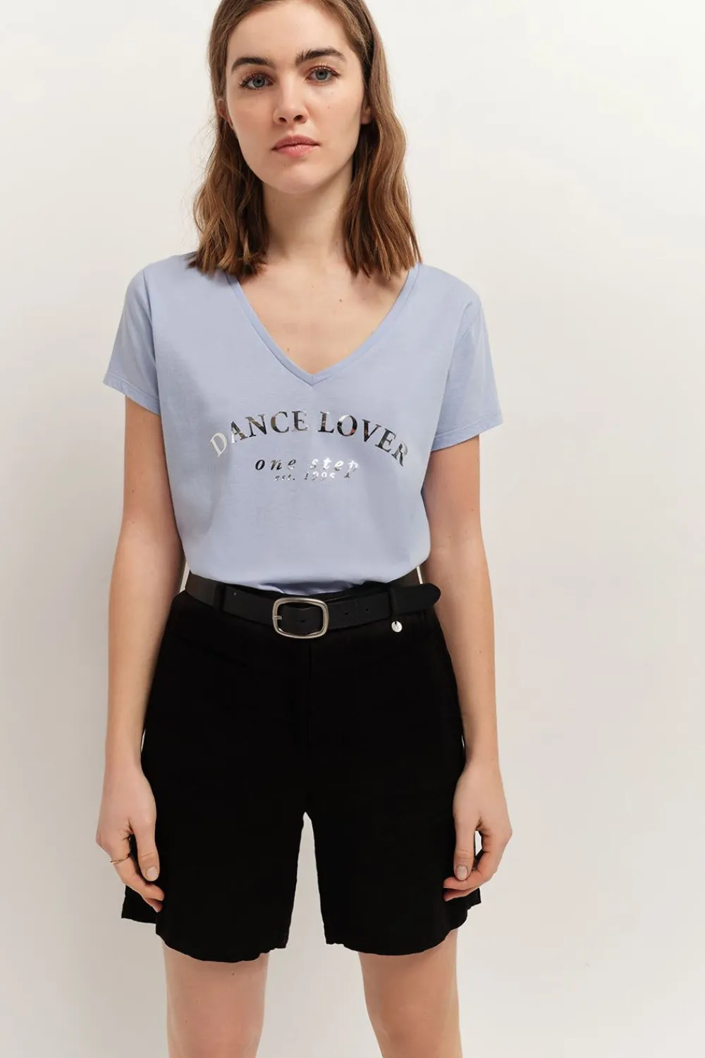 Miro, C’Est Le Nouveau T-Shirt Mantra De La Saison. Encolure V Et Manches Courtes, En Coton Tout Doux, Il Se Collectionne En Coloris Pastel, Bleu Ciel. A Réserver Au Dance Lover !