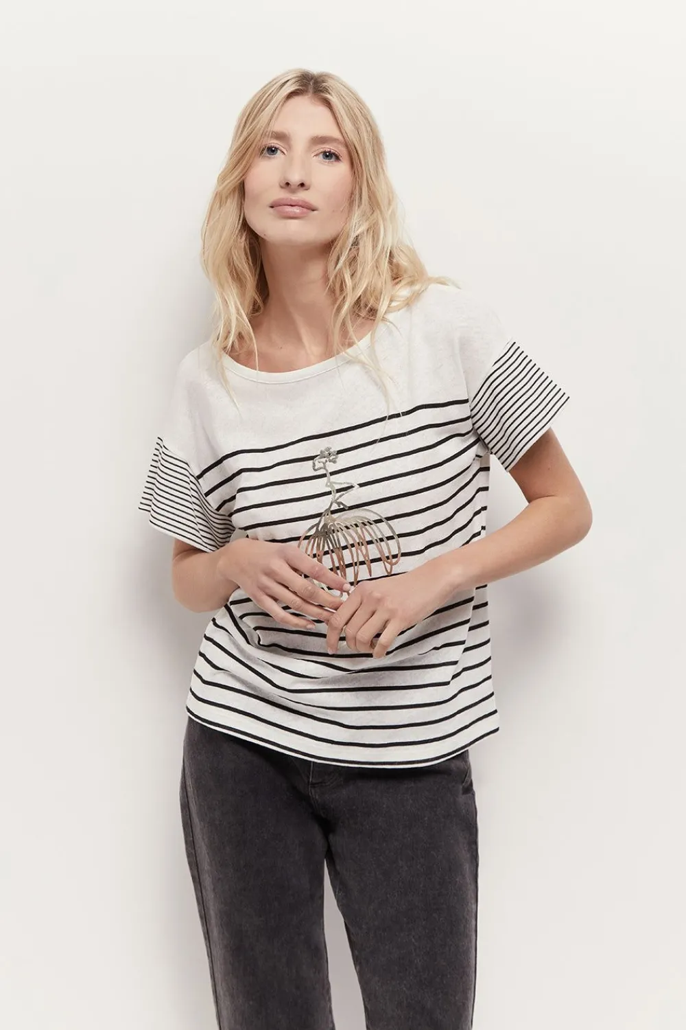 One Step Revisite À Nouveau La Célèbre Marinière. Son Nom ? Molly. Un T-Shirt Écru En Coton Et Lin, Rythmé De Rayu…