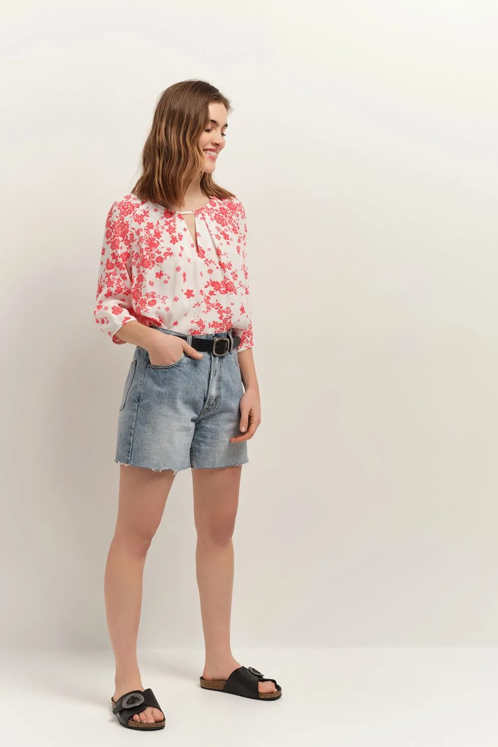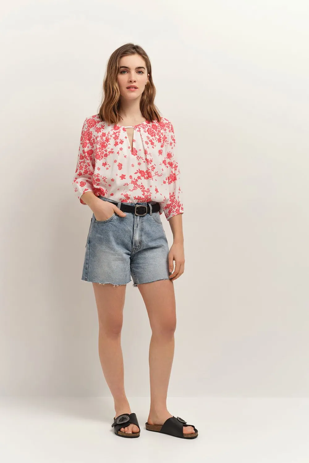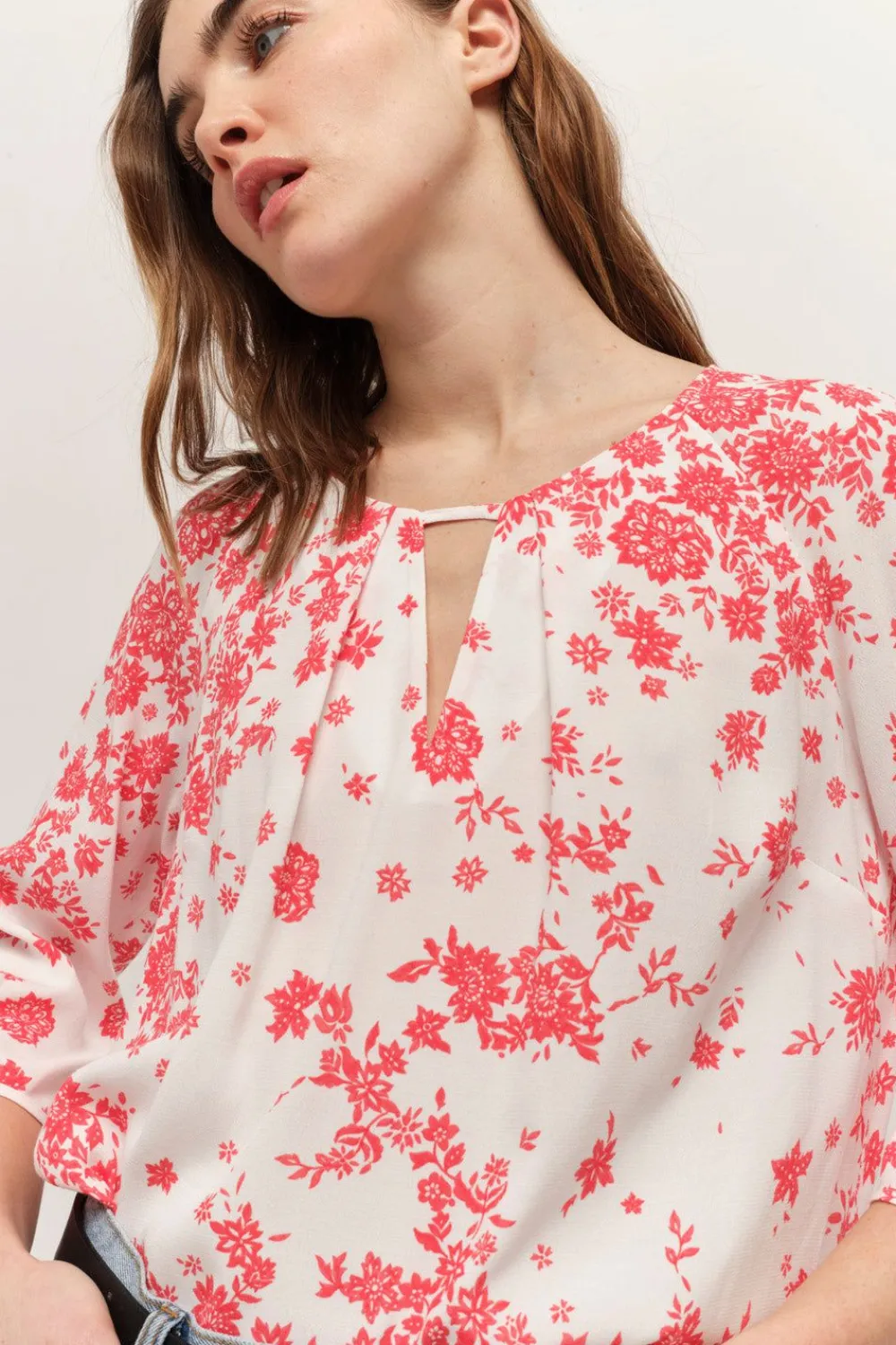 L’Imprimé Faïence Bohème Est Une Invitation À L’Élégance. La Blouse Colin Maîtrise Le Duo D’Écru Et De Rouge Hibiscus, Sur Un Crêpe De Viscose Fluide, Avec Beaucoup De Modernité. On Aime Son Encolure V, Maintenue Par Une Fine Patte Effet Col Rond.