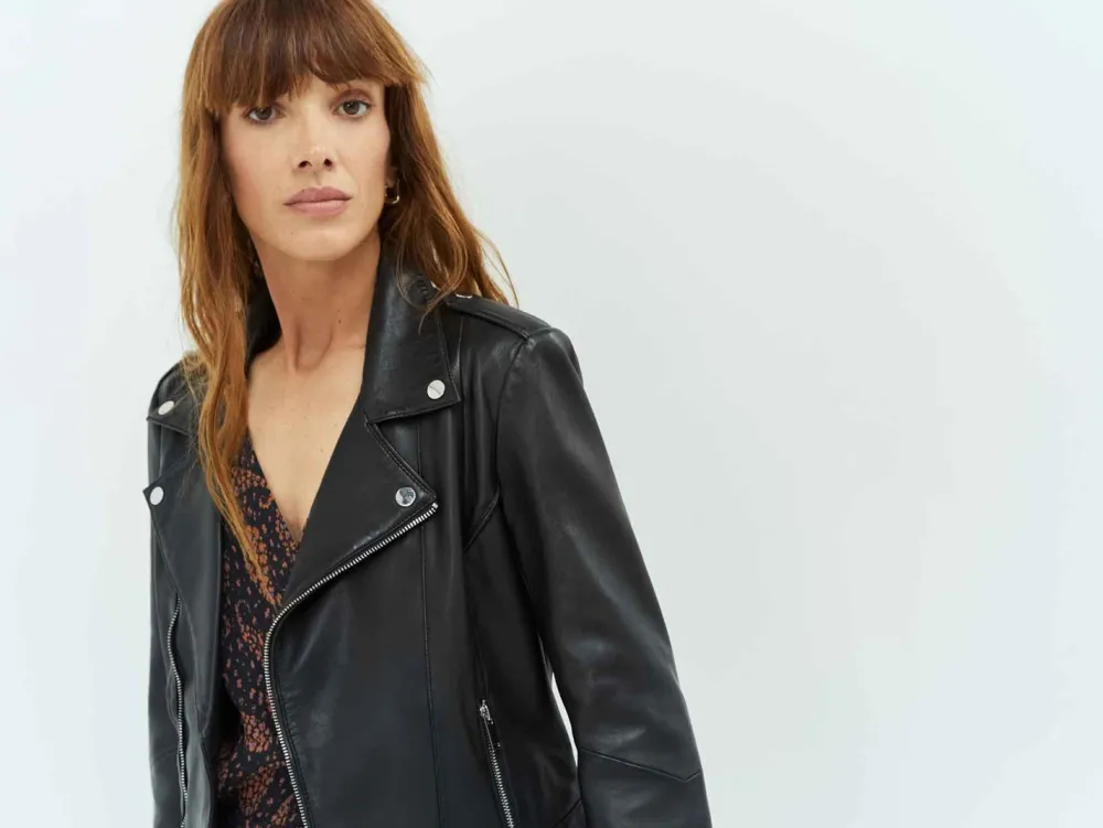 Impossible De Signer Votre Look D’Une Touche Rock Sans Un Blouson En Cuir Noir Coupe Biker. En 100% Cuir D’Agneau, Il Est S’Approprie Les Codes Avec Des Métalleries Argentées : Rivets Au Col, Zips Aux Poches Et Poignets. Il Séduit Par Sa Souplesse Et Sa Simplicité.