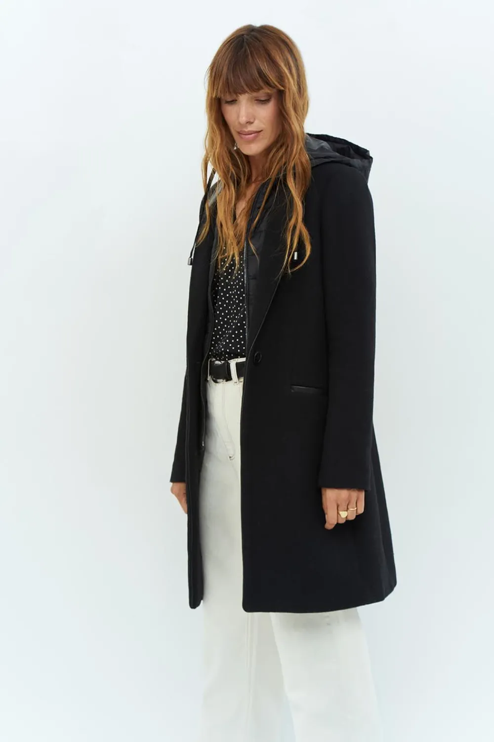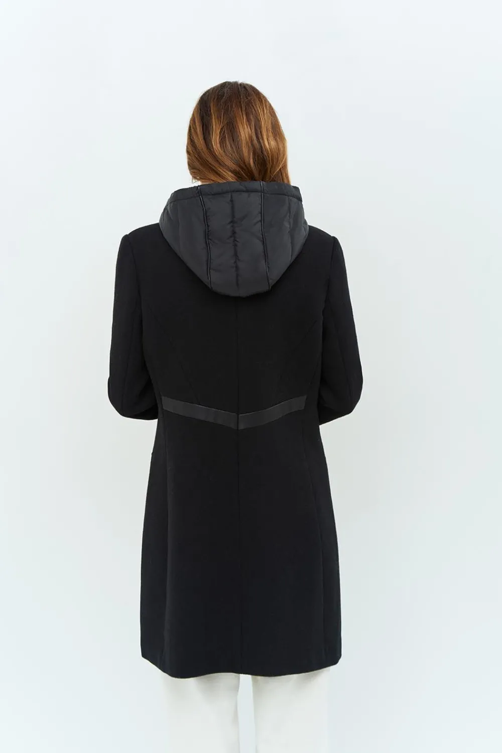 Le Manteau Dida Allie Élégance Et Aisance. En Lainage Noir Et Mi-Long, Il Présente Une Coupe Droite, Avec Un Col Tailleur Rehaussé De Simili Cuir. La Surprise Vient De L’Intérieur ! Une Parmenture Esprit Doudoune Ton Sur Ton Avec Col Montant Et Capuche, Une Véritable Barrière Contre Le Froid !