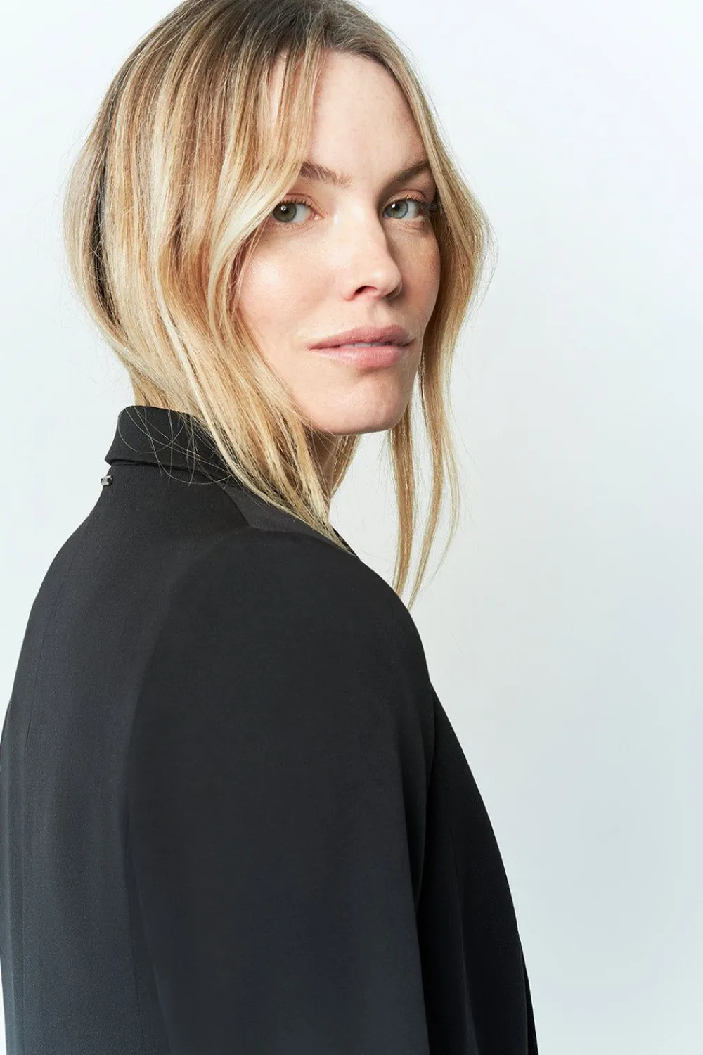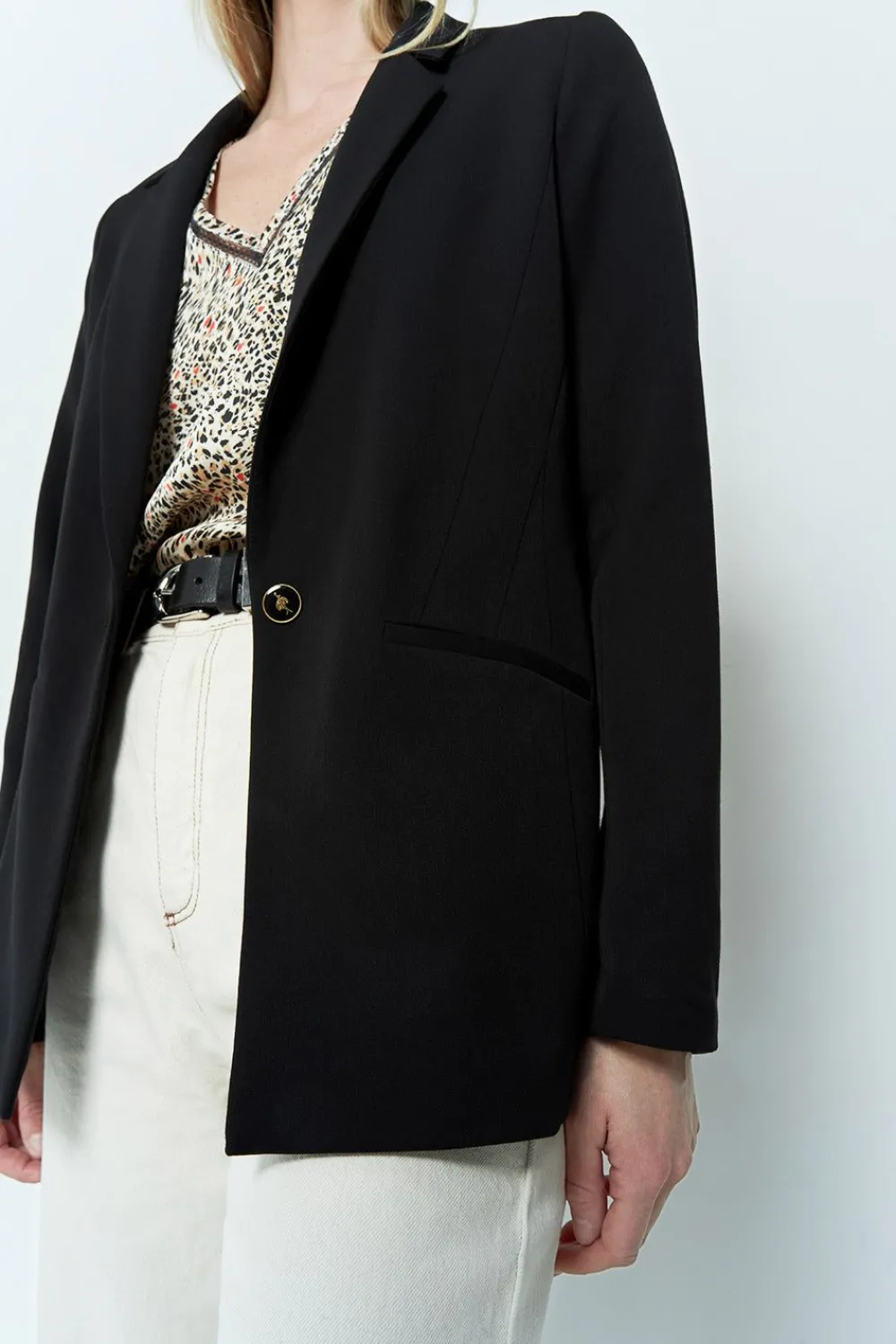 Pièce Essentielle Du Vestiaire, La Veste De Costume Noire Parfaite S’Appelle Vaya. En Toile Façon Laine Froide, Elle Dévoile Une Doublure Satinée À Fines Rayures. Les Découpes Placées Sur Les Côtés Structurent La Pièce. Son Clin D’Œil Féminin ? Un Bouton Danseuse Délicat.